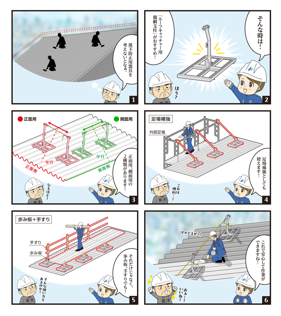 折板屋根上の作業をより安全に行える、ルーフキャッチャー専用の親綱支柱が登場!