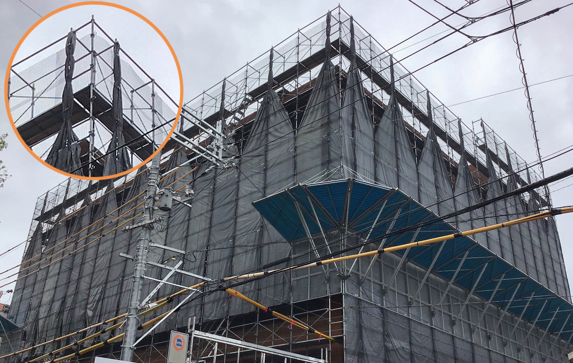 超強力ポリエステル製養生網です。折り曲げに強く、養生をしづらい箇所でも設置を行いやすいです。