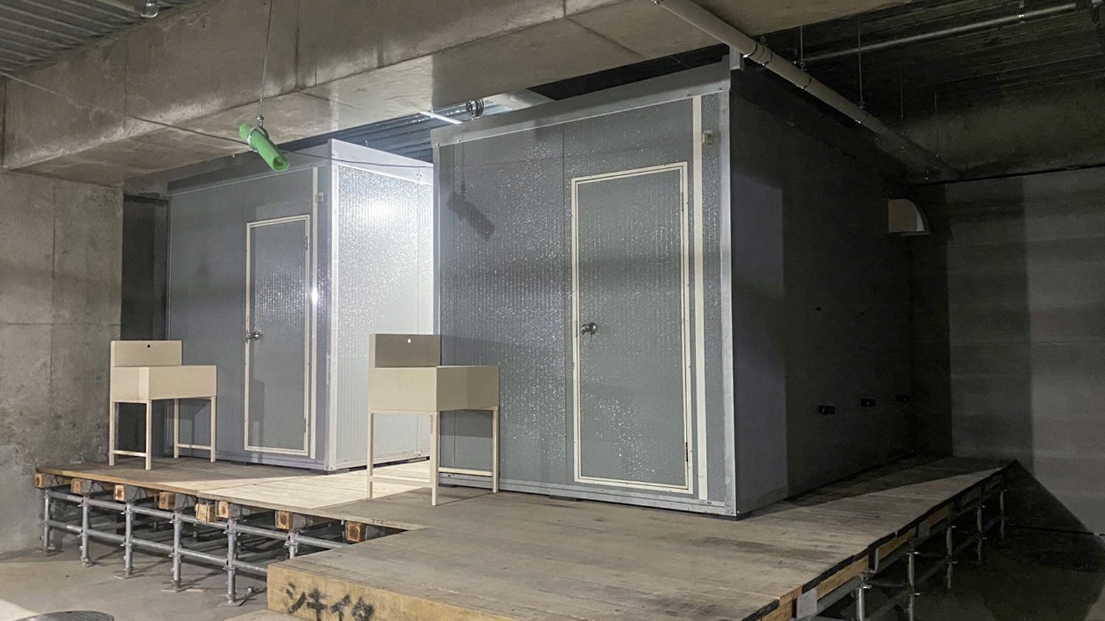 ・改修現場にて駐車場に事務所を設置したいが天井がありユニック作業ができない